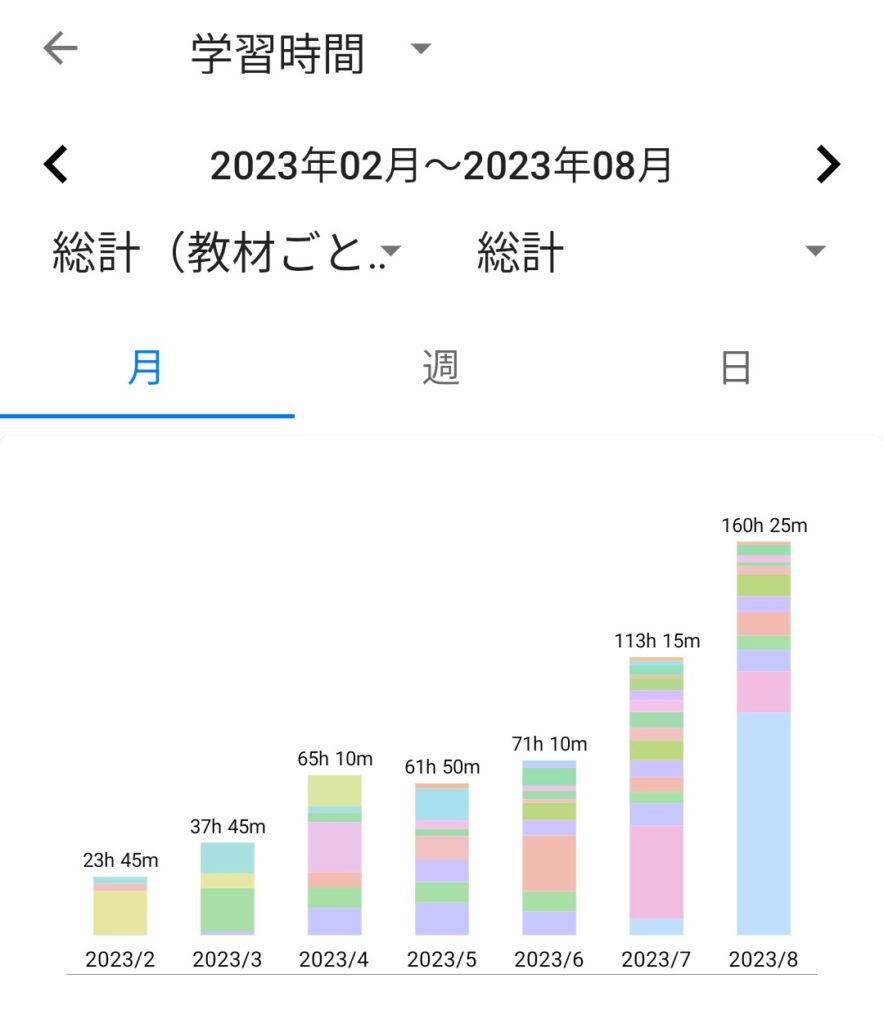 7月に113時間、8月には160時間と、「人生で最も勉強した2か月」でした。