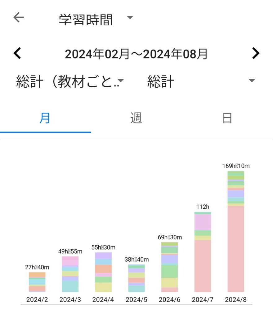 結果的に、後半にかけて勉強時間はしっかり伸び、7月・8月の追い込みでようやく「合格ライン」を超える実感が持てるようになったのです。